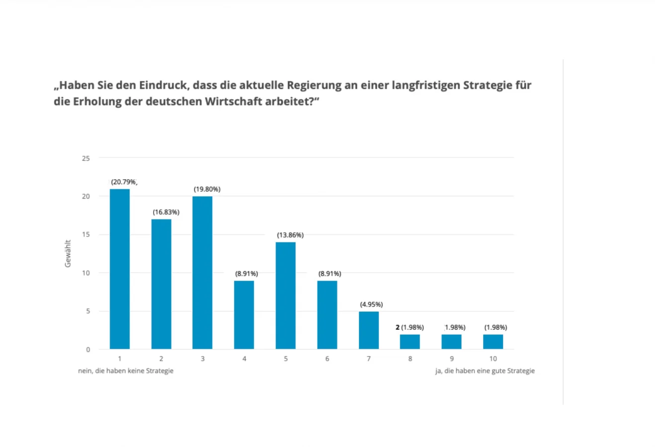 3.) Haben Sie den Eindruck, das die Regierung an einer langfristigen Strategie für die Erholung der deutschen Wirtschaft arbeitet?